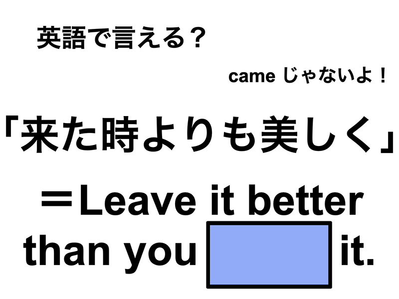 「来た時よりも美しく」って英語で言えますか?