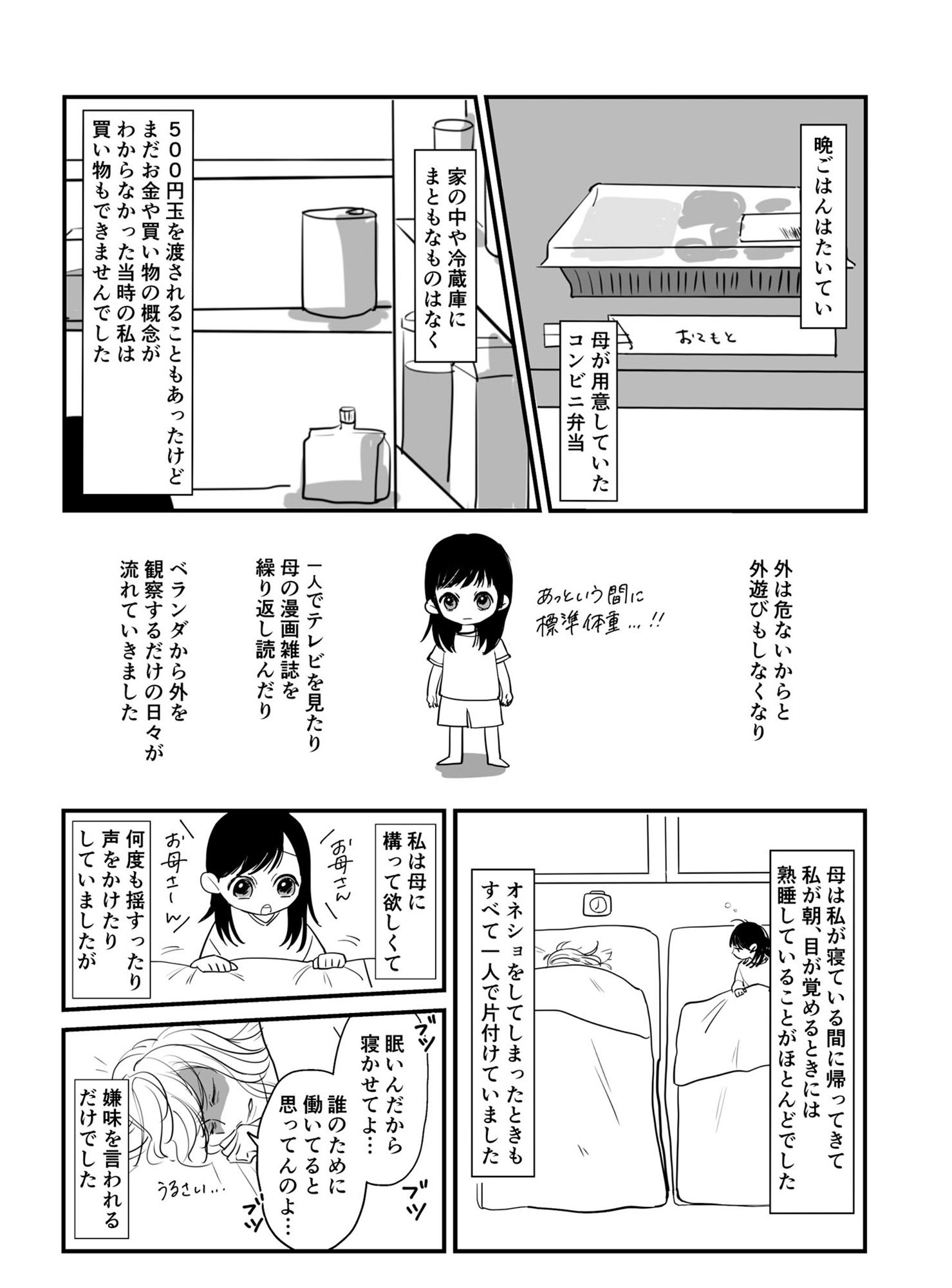 水商売をしている母親は夕方に仕事へ。夕飯はひとりでコンビニ弁当を食べる日々…【毒親に育てられました1 #3】