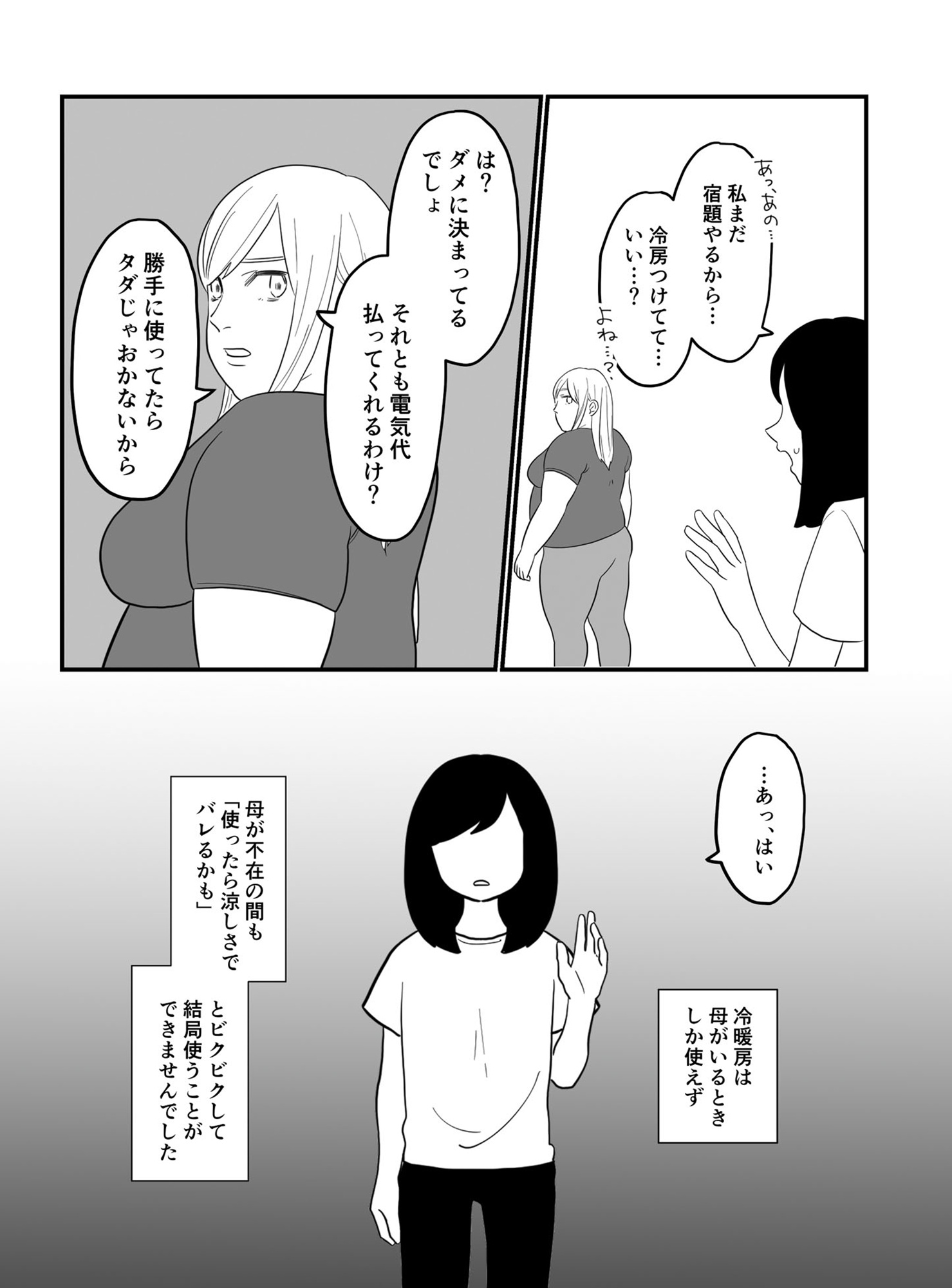 夏場の自室はエアコンなしの灼熱地獄。リビングで宿題をするが、そこでも母親に振り回される【毒親に育てられました2 #15】