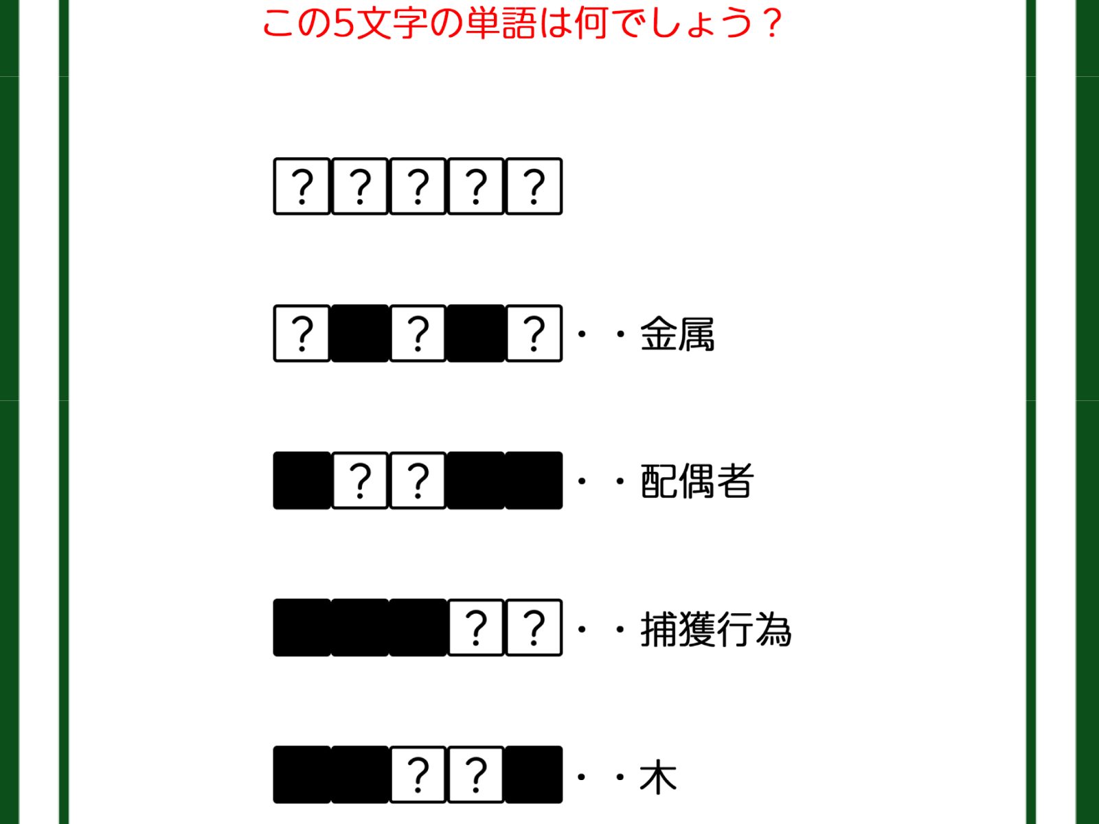 クイズです!「この5文字の単語は何でしょう?」4つの単語をヒントから導き出しましょう【難易度LV3.・中辛】