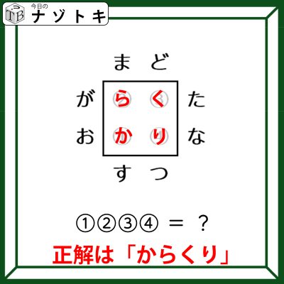 というわけであとは数字順に文字を拾って読んでいきましょう。正解は「からくり」でした。