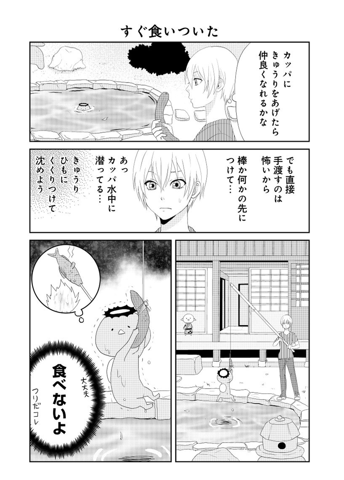 カッパと仲良くなりたくて、好物の「きゅうり」を買ってきた弟。手渡しはまだ怖いな…【ウチの百鬼夜行 #3】