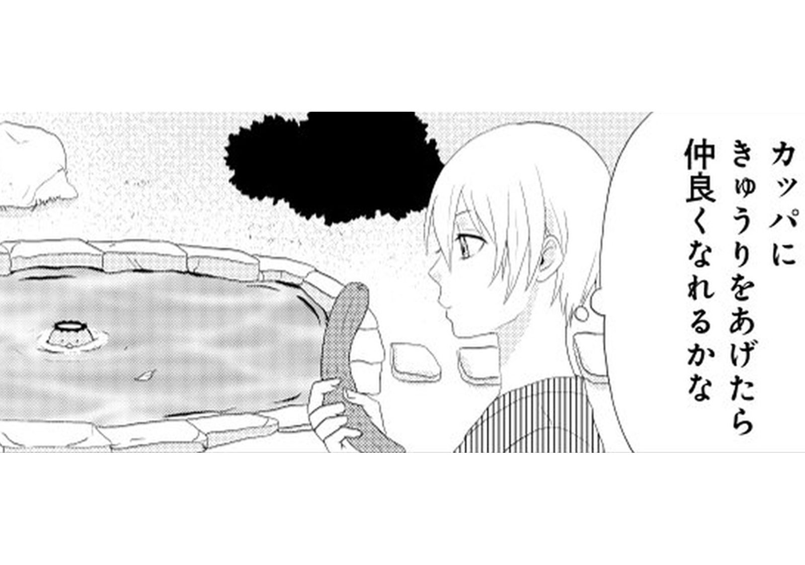 カッパと仲良くなりたくて、好物の「きゅうり」を買ってきた弟。手渡しはまだ怖いな…【ウチの百鬼夜行 #3】