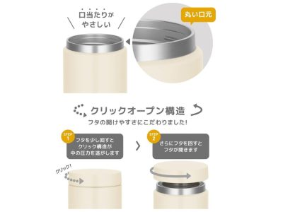 分解せずに洗える「シームレスせん」、汚れがおちやすい「ラクリア加工+(プラス)」を採用。6時間たっても保温力バッチリ!のスープジャー