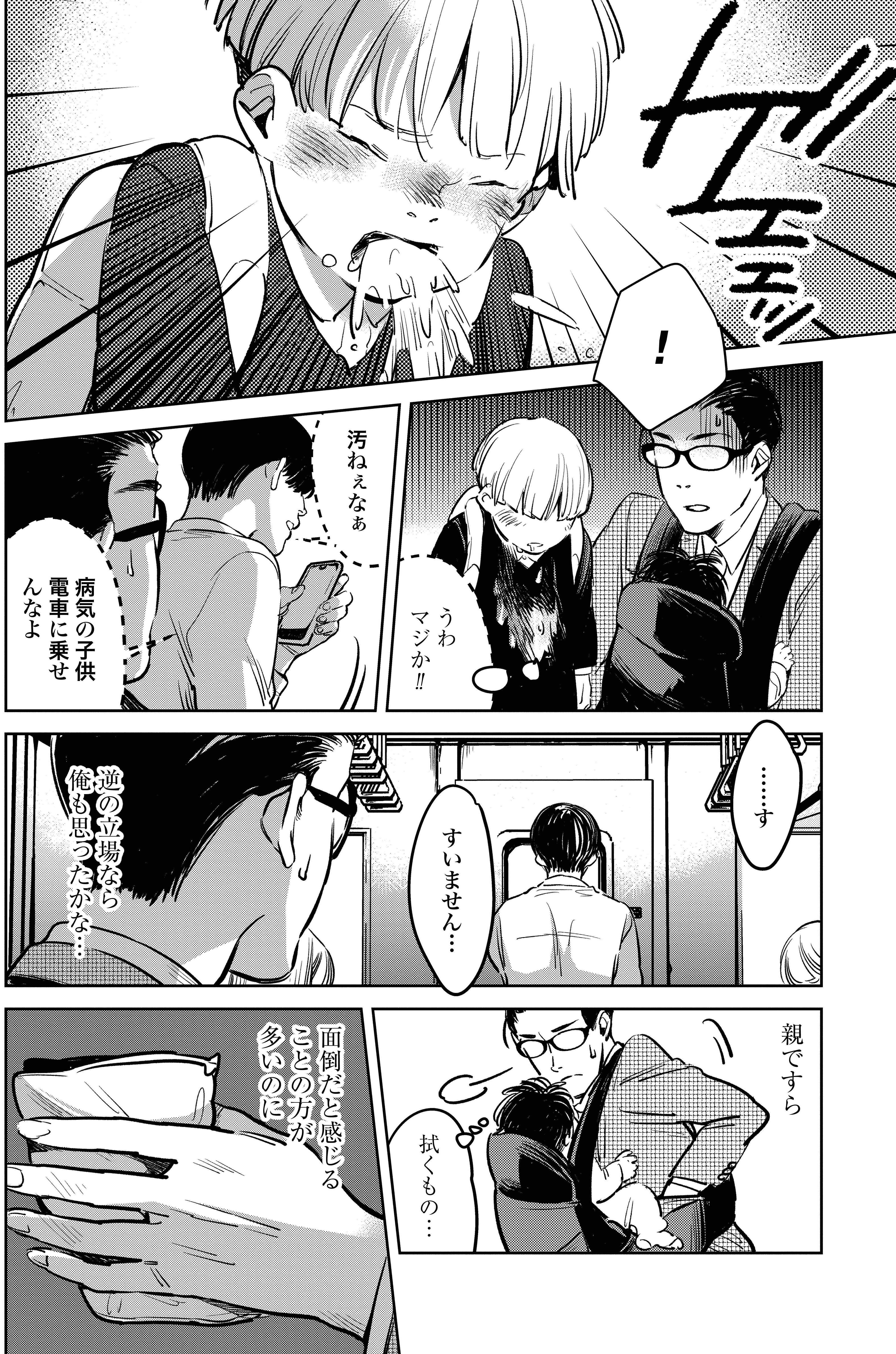 電車で息子が咳をして嘔吐!父親が 助けを求めても、見て見ぬふりをするお大人たち【ハネチンとブッキーのお子さま診療録 #1】