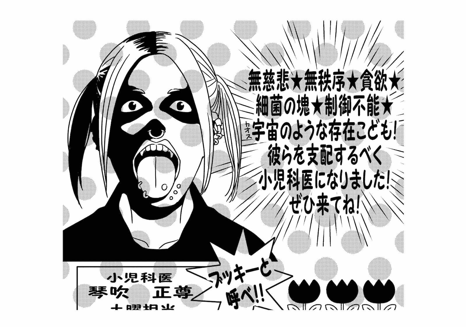人は見かけで判断してはいけない! オバケメイクの医師に救われ、小児科のチラシをもらうと?【ハネチンとブッキーのお子さま診療録 #7】