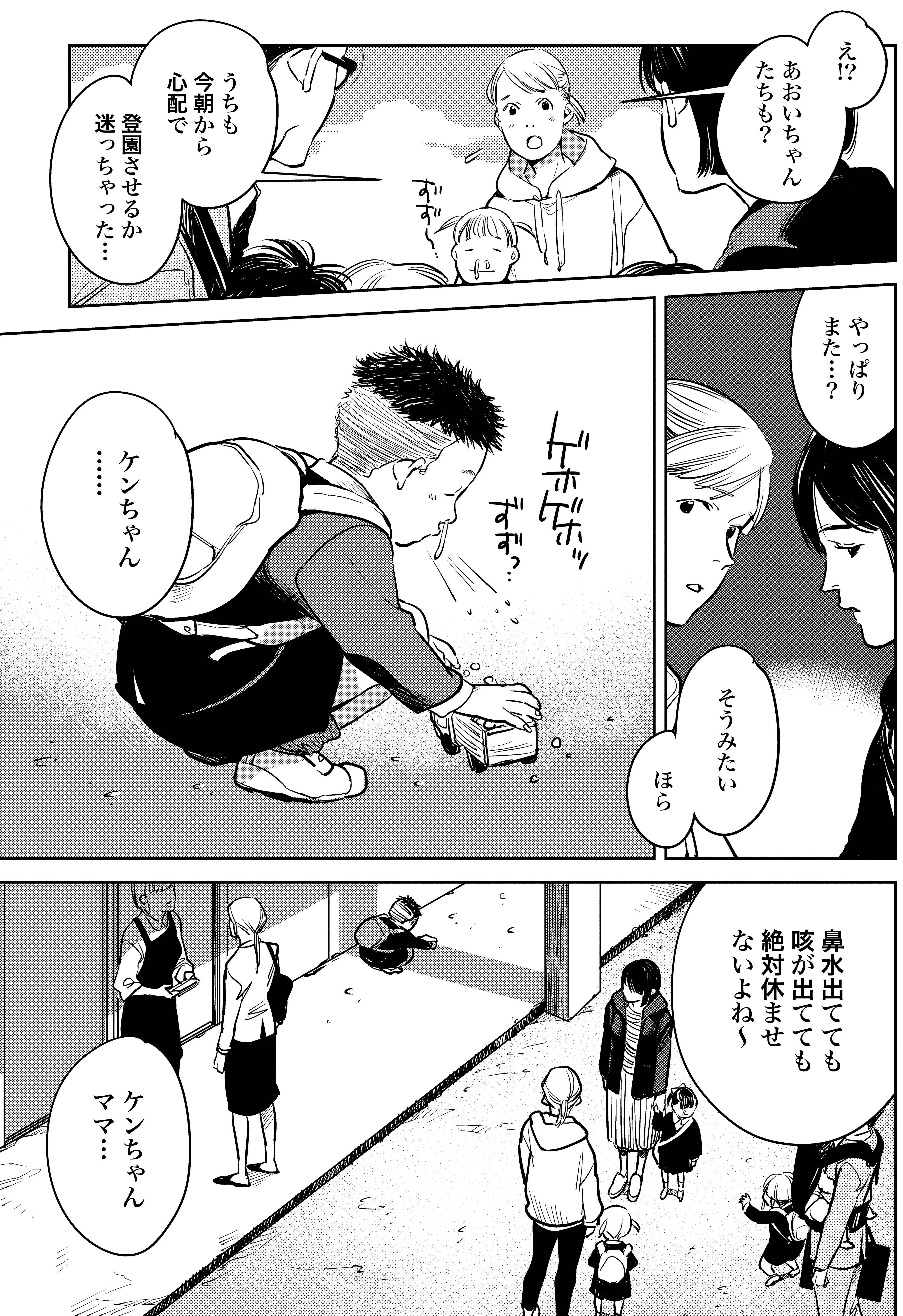 子ども同士でうつる感染症。「鼻水が出ても咳が出ても幼稚園を休ませない」親に対して不満が爆発…【ハネチンとブッキーのお子さま診療録 #8】