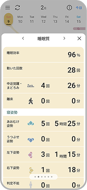 どちら側を下にして寝ているのかの判定までしてくれます。中途覚醒が表示される点も素晴らしく、「私はあまり寝られていない」と思っていたのに実は思ったほど中途覚醒していない、なんて気づいたりも。