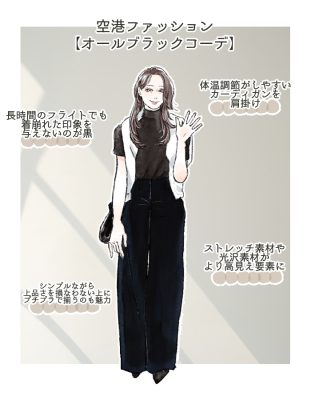 少女時代のユナさんが2024年に着用されていた、オールブラックの空港ファッションはシンプルながらも美しく、大人世代にもぴったりのスタイリングです。黒なら、リラックス感のあるストレッチ素材の服でも上質さを損なわせません。春先は、トレンチコートなどのライトアウターを羽織りつつ、室内ではカーディガンを肩掛けするといったように、体温調節がしやすい重ね着を意識すると良いですね。このようなオールブラックコーデは、私たちの生活になぞらえると、旅行シーンや、長時間の活動が必要とされるオフィスコーデにも対応できます。