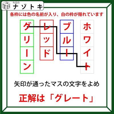 よって、ホワイトの「ト」の部分も矢印が通っているわけなのでそこまで読んで答えとなります。正解は「グレート」でした。解けたあなたはグレートですね。