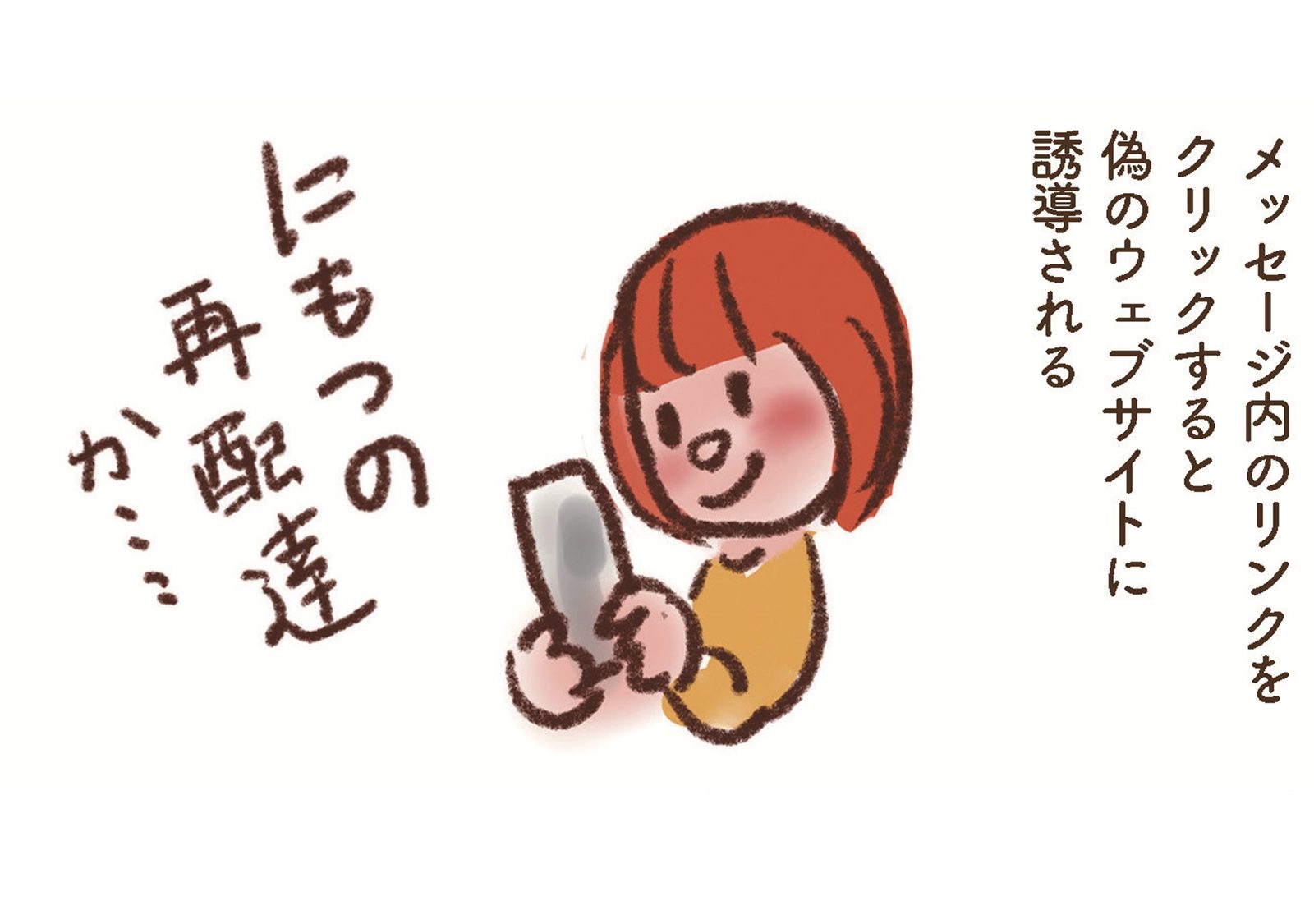 ショートメッセージでの詐欺「スミッシング」に要注意!宅配便の再配達かと思ったら…【大切な「いのち」と「お金」を守る マンガ 防災&防犯ブック #21】