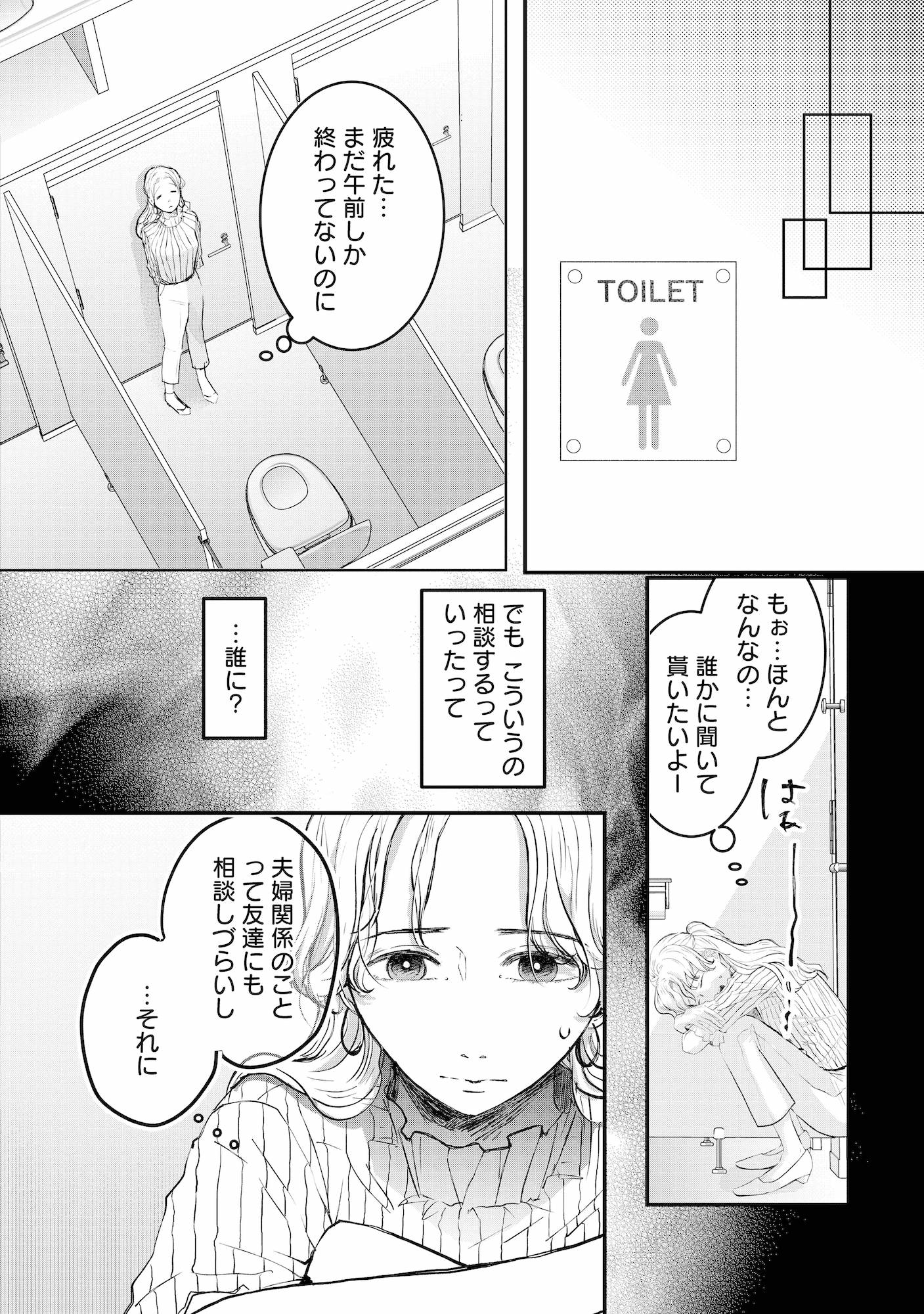 職場のトイレに逃げ込んだ妻。突然「バンッ」とドアを叩く音が…!?【夫は嘘をついている #36】