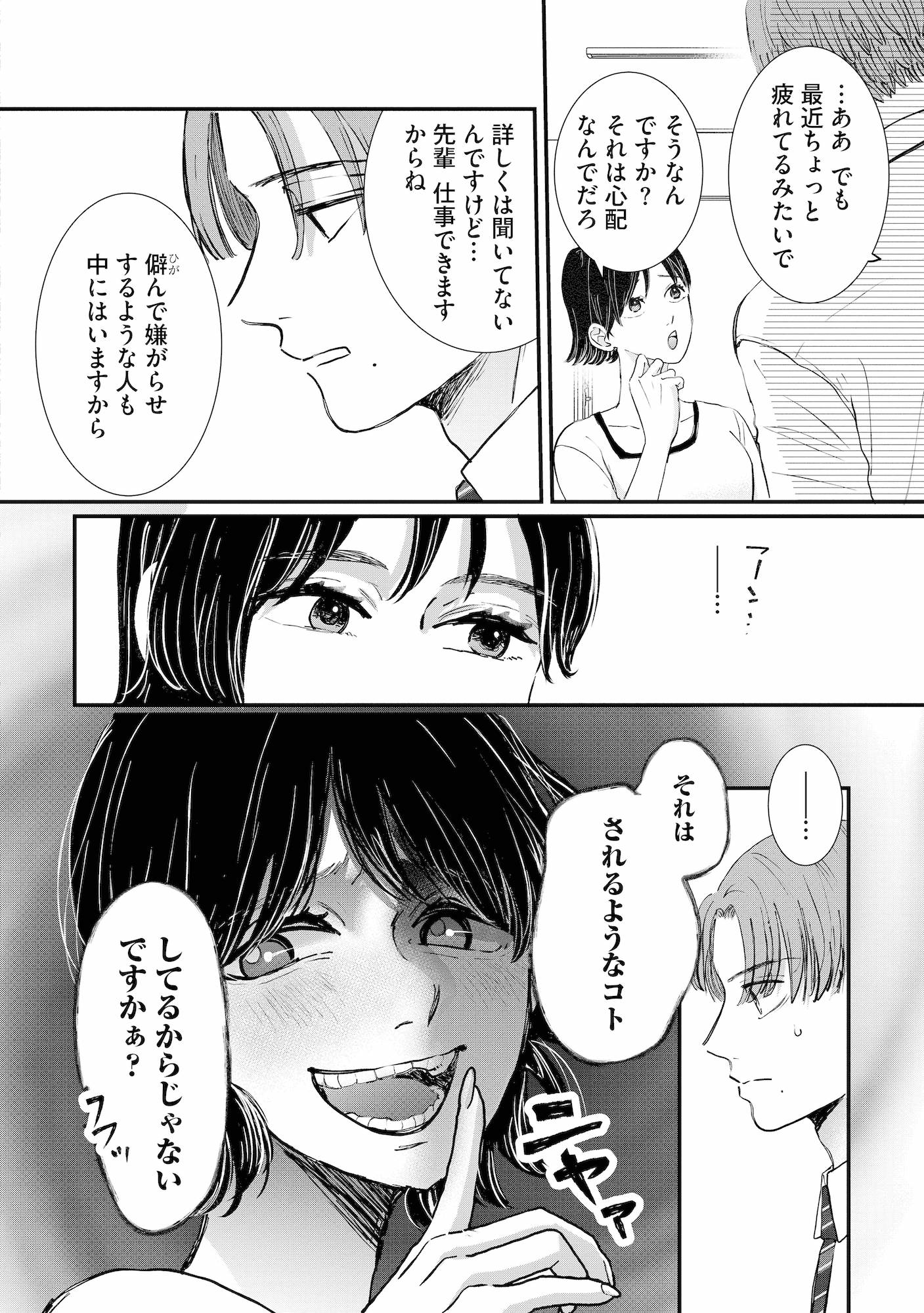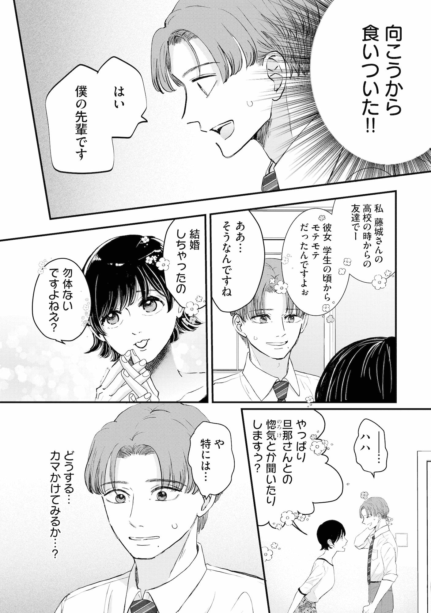 例の元カノに話しかけた後輩…返ってきた不敵な笑みに背筋が凍る【夫は嘘をついている #53】