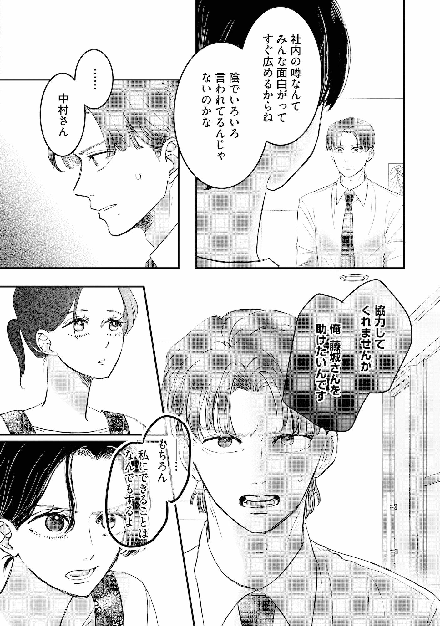 社内に広がる悪意の噂…。助けたい一心で、後輩が上司に協力を仰ぐ【夫は嘘をついている #65】