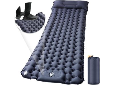 エアーマット キャンプ マット【30s膨らむ・10CM厚さ】お花見に 足踏み式 無限連結可能 R値4.0 車中泊 防災 厚手 枕付き 超軽量 コンパクト 防水 寝袋 持ち運び便利 簡単収納 補修テープ付 災害 登山 テント用 キャンプ用品