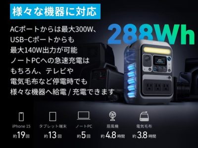 Anker Solix C300 Portable Power Station ポータブル電源 288Wh 小型軽量 1.1時間満充電 高出力AC ストラップ付属 リン酸鉄 蓄電池 ポータブルバッテリー ソーラーパネル対応 キャンプ アウトドア 車中泊 停電対策 防災 (ダークグレー)