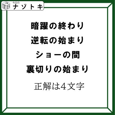 クイズです!「4つの言葉から4文字の言葉を導きましょう」ヒント!各言葉のから一文字を拾いましょう【難易度LV3.・中辛】