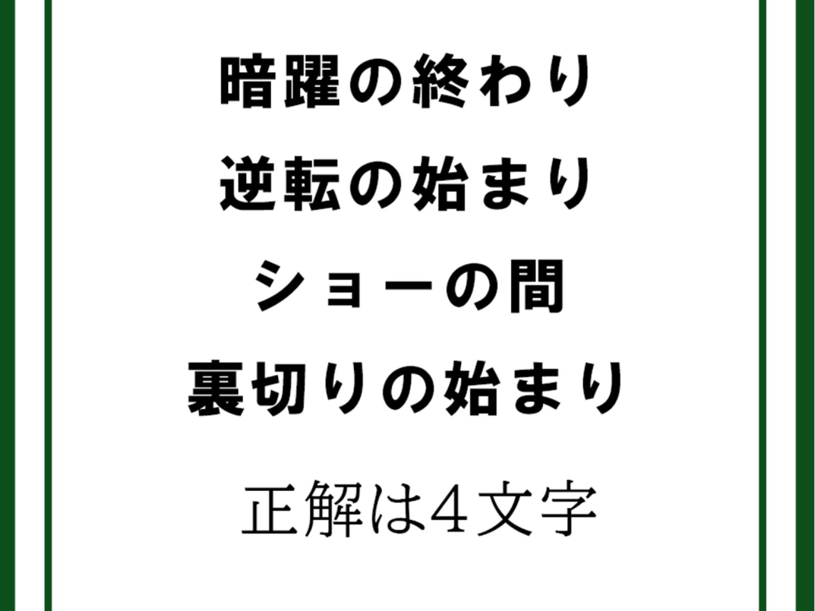 クイズです!「4つの言葉から4文字の言葉を導きましょう」ヒント!各言葉のから一文字を拾いましょう【難易度LV3.・中辛】