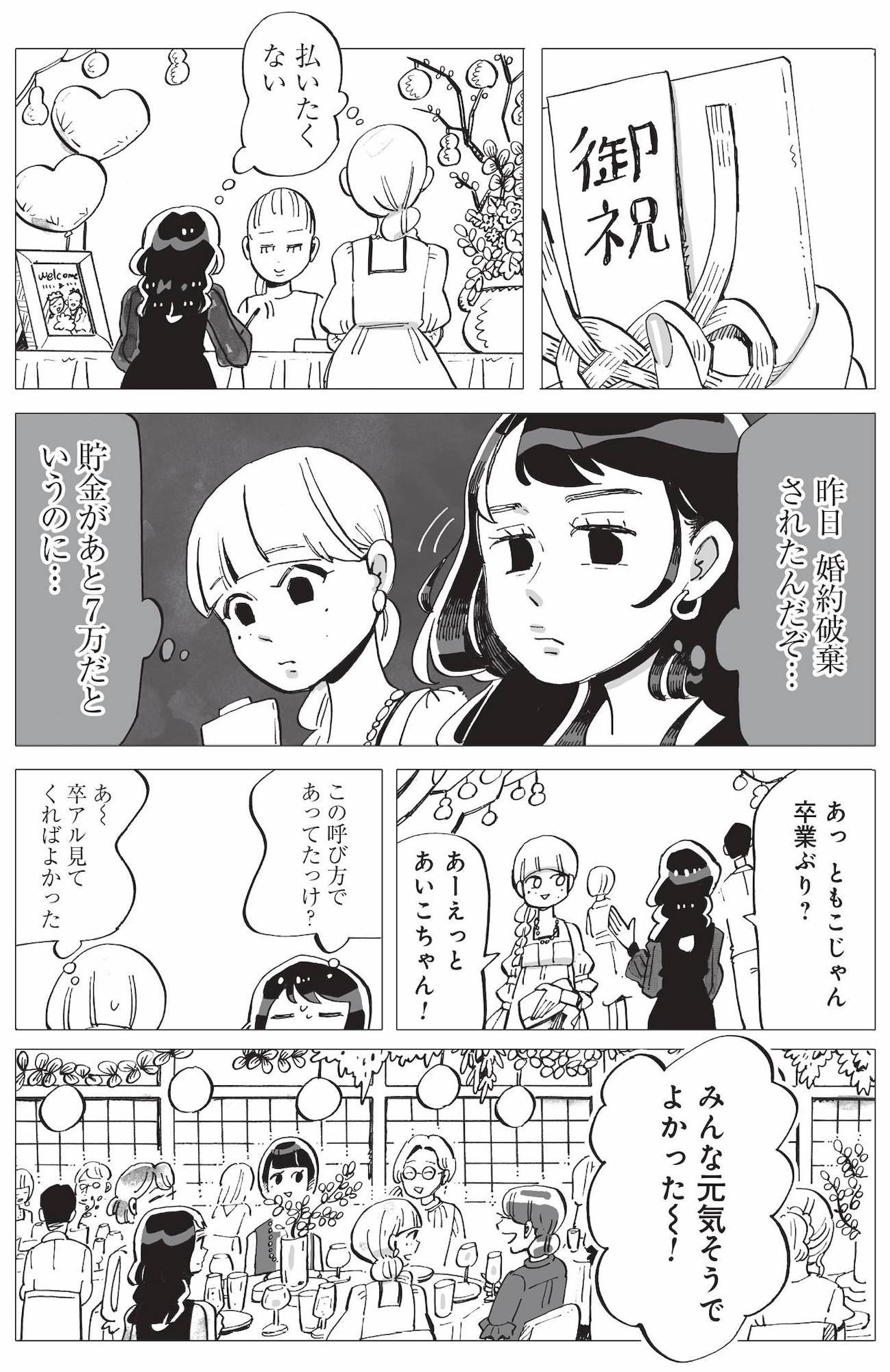 「お祝い払いたくない…」複雑な気持ちで同級生の結婚パーティーへ向かう未婚のアラサー女性【今夜すきやきだよ #5】