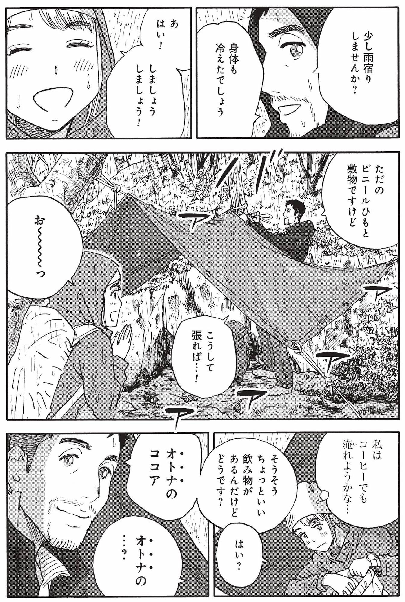 欲張りウィンナー麺、雲上の楽園コーヒーなどなど…。読むとお腹がすいて、山に登りたくなるアウトドア漫画