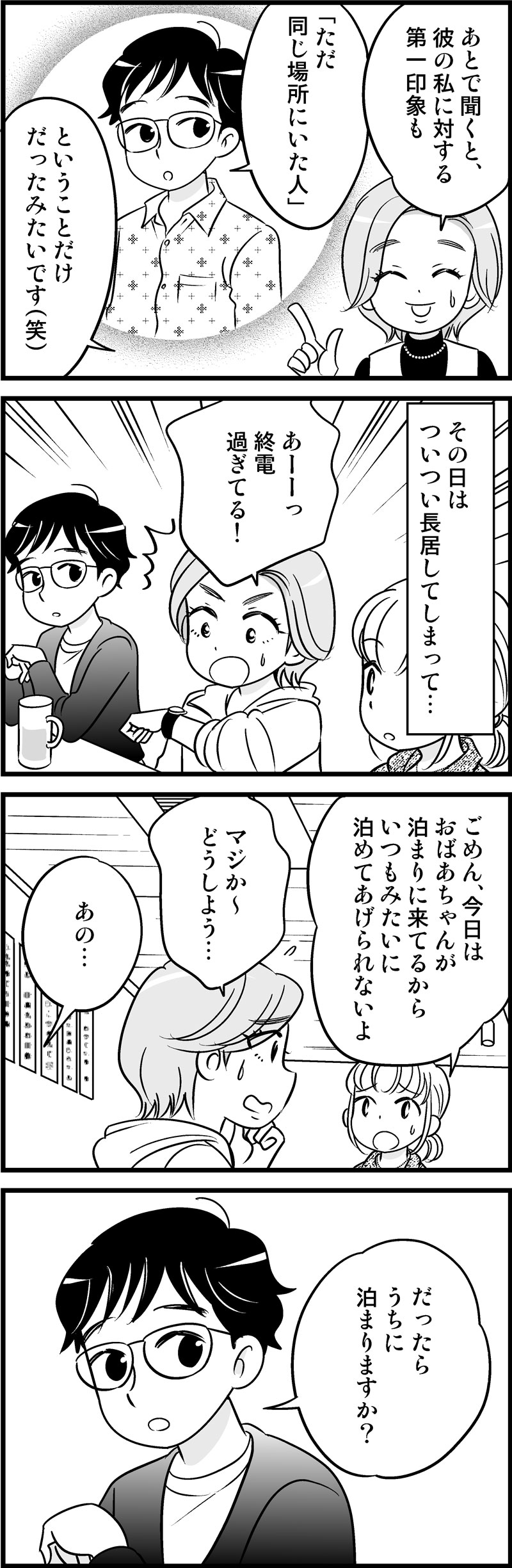 初対面で全然タイプじゃない彼から「うちに泊まりますか?」と聞かれたら…終電を逃して転がり込むというありがちな展開に【オトナ婚#255】