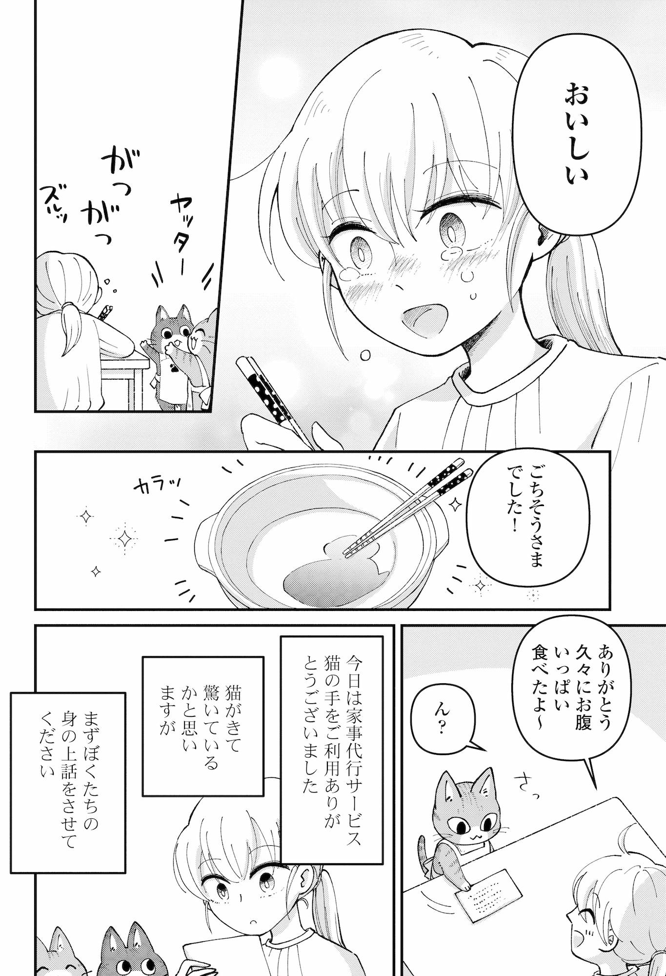 「何これ!?」玄関を開けるとエプロン姿の猫が…!今日お願いした家事代行のお手伝いさん?【家政婦よんだら猫がきた #3】