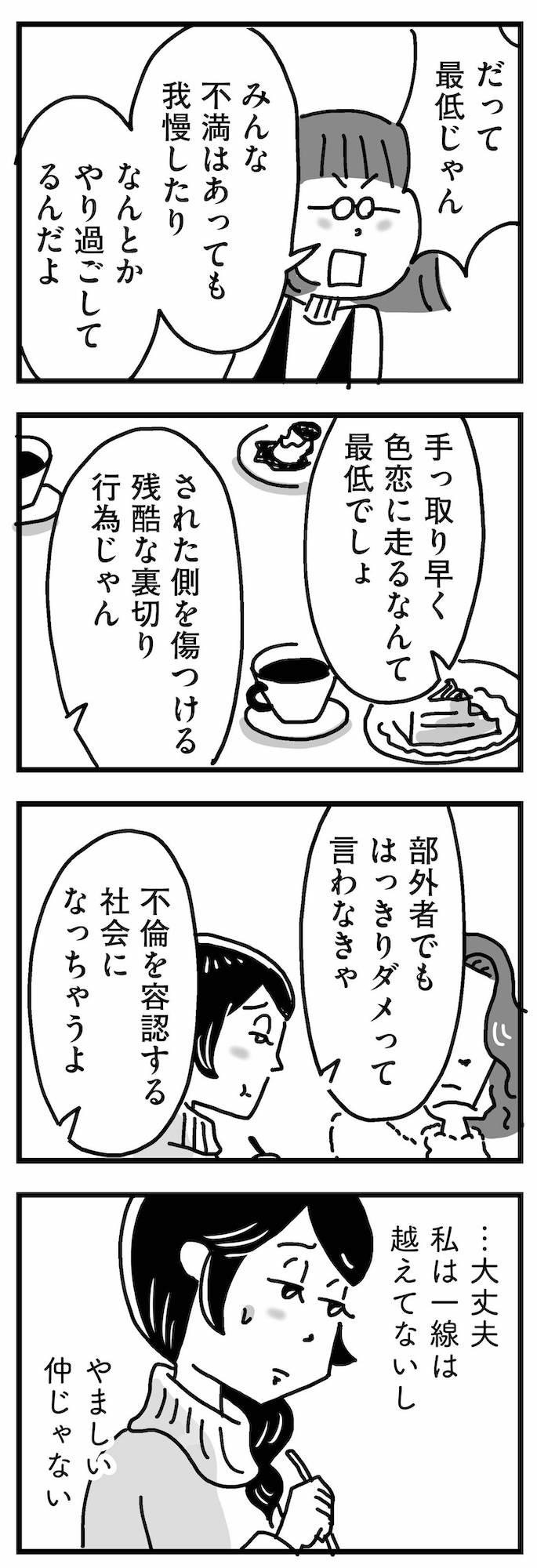 私はまだ一線を越えていないから大丈夫。不倫を全否定する友人の言葉に内心ヒヤヒヤ…【心の不倫は罪ですか? #9】