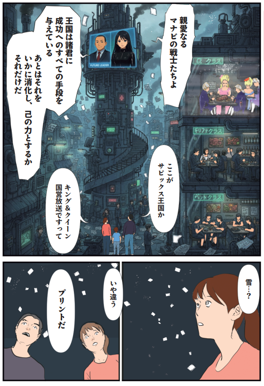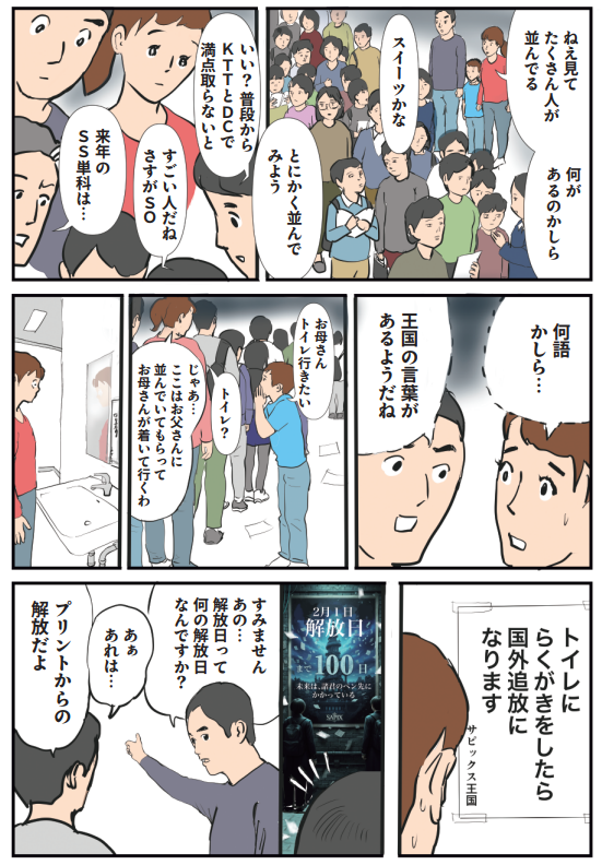 新作漫画『元SAPIXママ 中受伴走1095日』を拝読したのですが、プロローグの「中受4大塾が王国だったら」という、「SAPIX・日能研・四谷大塚・早稲田アカデミー」を「異世界転送RPG」風に描いたページはいきなり最高でした!