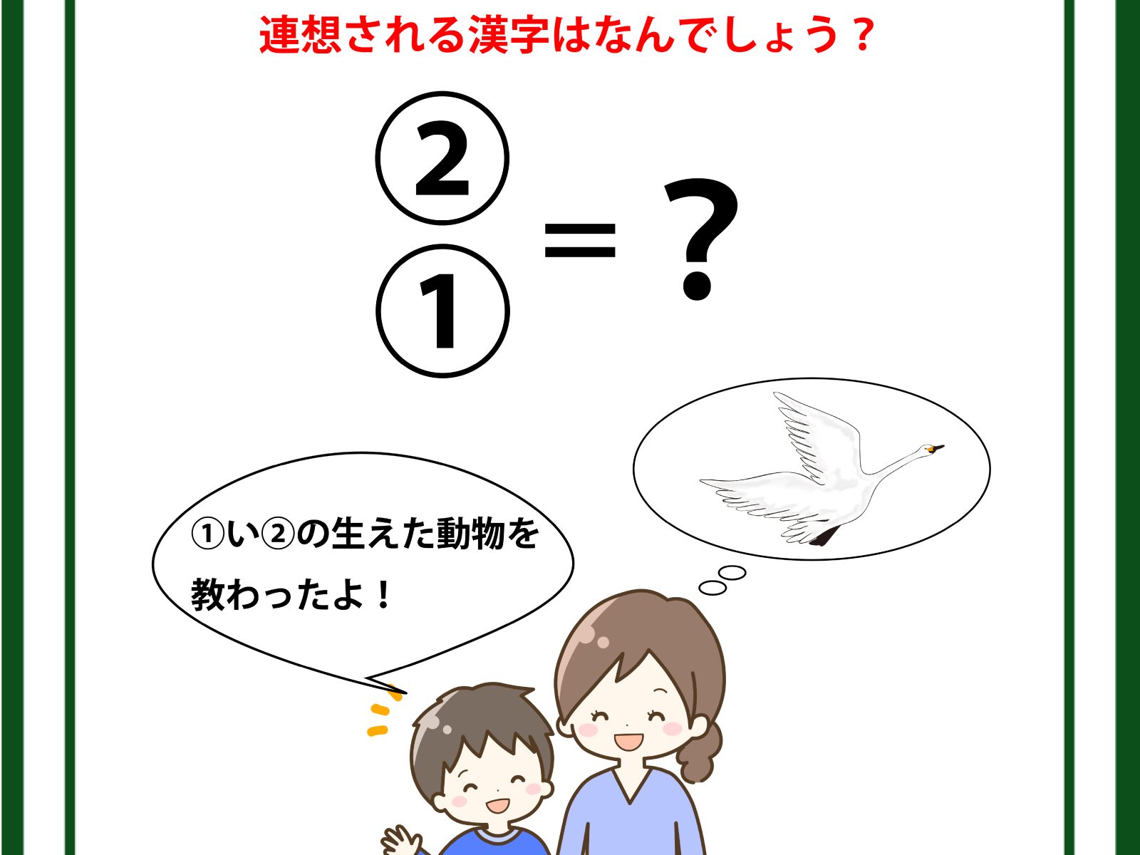クイズです!「イラストの会話から連想される漢字は?」母親が思い浮かべているものから読み解きましょう【難易度LV2.・甘口】