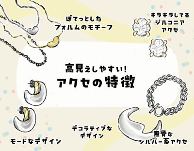 また、純銀を92.5%使用したSilver925のアクセサリーやステンレスシリーズは、デザイン自体もシンプルで質感も深みを感じるアイテムが非常に多いのでおすすめできます。ハートやドロップなどのモチーフアクセを取り入れたい時は、メタル素材でぽってりとした丸みのあるデザインを選ぶと高見えしやすいでしょう。