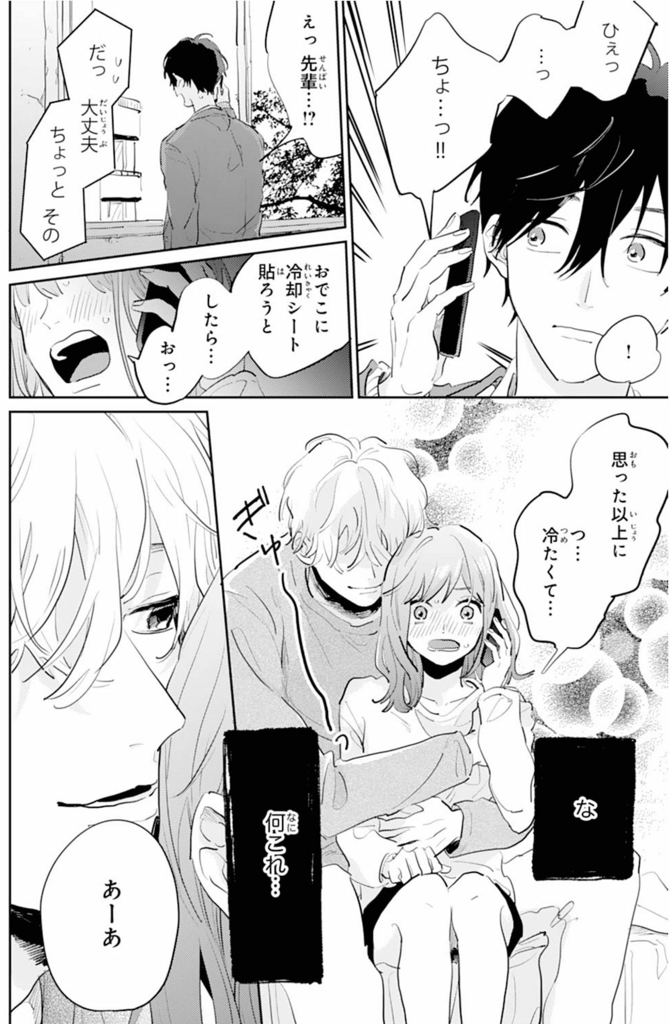 後輩男子と電話中、背後から抱き寄せてくる彼。スマホを取り上げて放った一言とは?【ごほうびは夜にちょうだい #17】