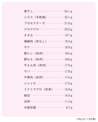 ただし、たとえば豆腐でタンパク質を10g摂ろうとすると、約1.5丁が必要になりますから、一度で食べ切るのは難しいかもしれませんね。ですから、肉や卵、魚などの動物性食品のほうが効率よくタンパク質を摂取することができます。