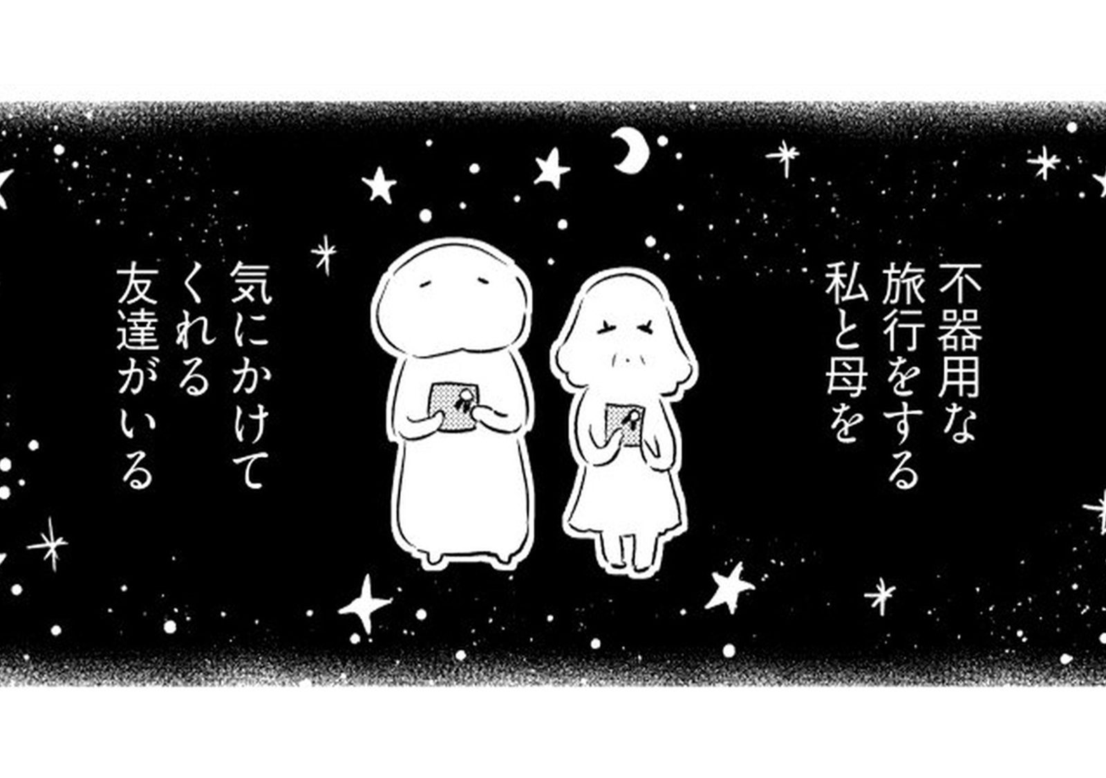 年間に何度も旅する漫画家の“私”が、旅慣れない母を連れて向かったのは関東への二人旅。壊れたサンダルで現れる母に始まり、行く先々でハプニング続出。