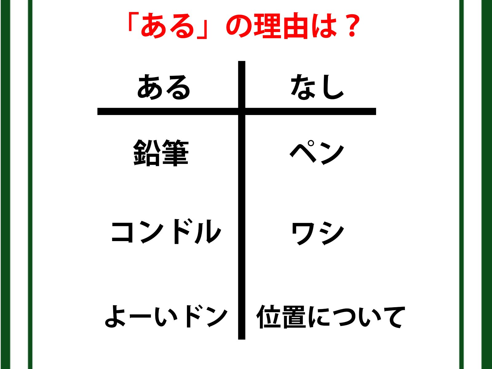 あるなしクイズです!「鉛筆にはあってペンにはない。コンドルにあってワシにない」共通点はなに?【難易度LV2.・甘口】