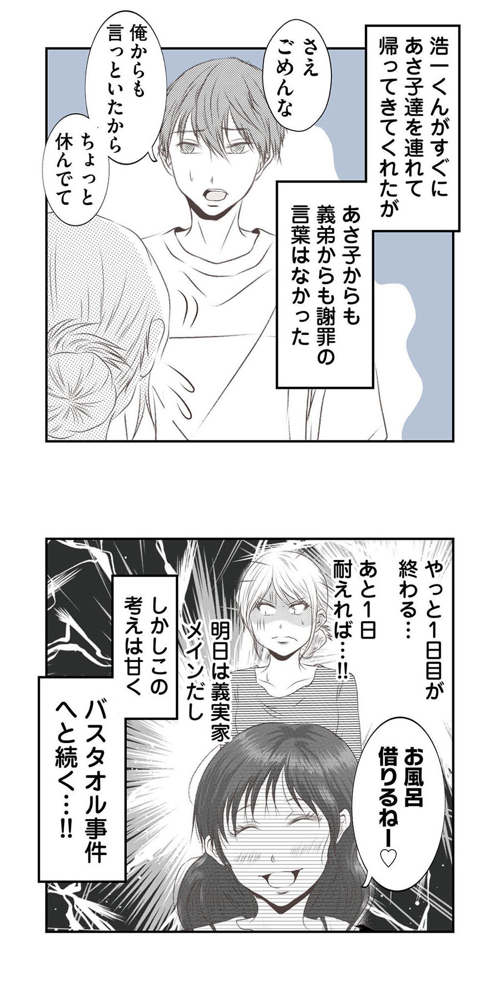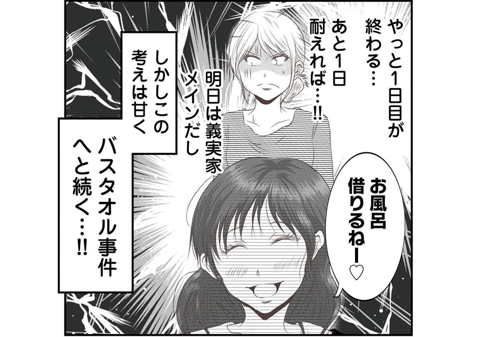 あと1日だけ我慢すれば…安堵も束の間、無神経な義妹が起した「バスタオル事件」とは? 【うちを無料ホテル扱いする義妹がしんどい #6】