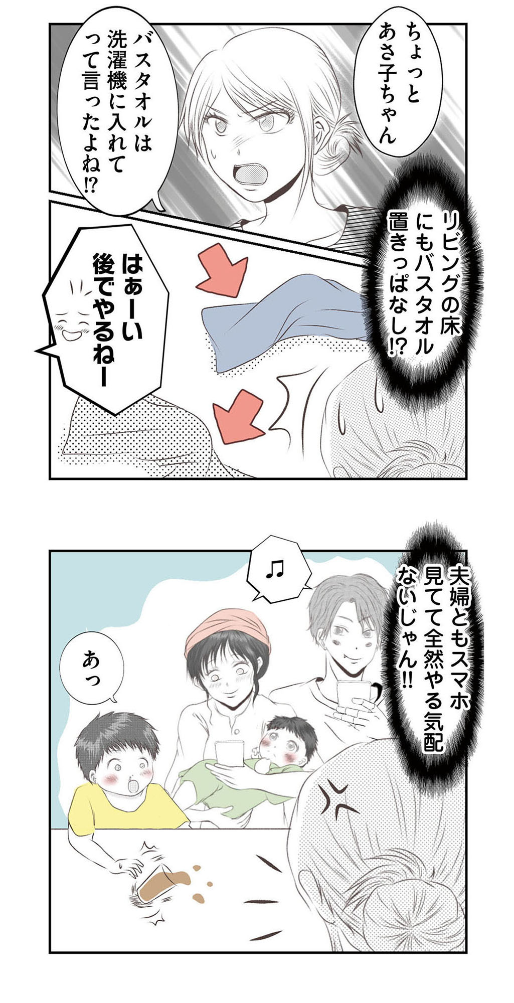 私が潔癖なだけなの?体を拭くタオルで汚れた床を拭く義妹に怒りが込み上げる【うちを無料ホテル扱いする義妹がしんどい #7】