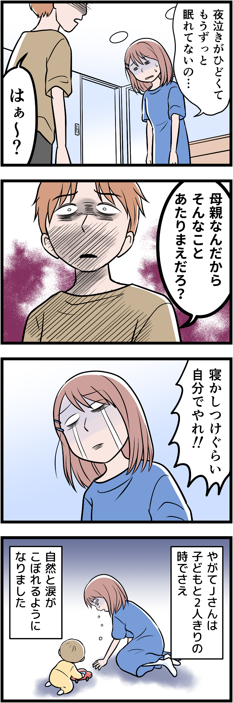 子どもの通院で、夕食を作るのが遅れた日。夫が「サボるな!」と…。私は涙が止まらない日が増えてきて【モラハラ実話マンガ】#166