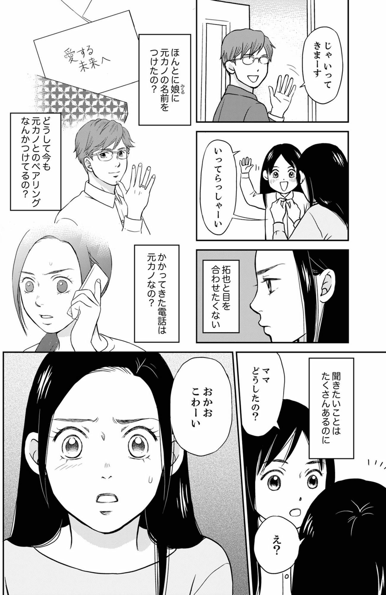 「娘に元カノと同じ名前をつけたの?」夫に聞きたいことが山ほどあるのに、怖くて聞けない…【右手に指輪をする夫 #5】 2026.04.20 LIFE マンガ家族関係右手に指輪をする夫 試し読みマンガ試し読み試し読み浮気 ▶Renta!『右手に指輪をする夫』 ▶30日間無料▶ Amazonの読み放題をチェック! ▶【99円で2カ月間】 Audible が無制限で聴ける! ▶楽天KOBO 初回購入金額のポイント最大70倍! スポンサーリンク 次のページへ >> 1 2 3 この記事は OTONA SALONE1 【注目の記事】 不登校で引きこもりになった子どもが、バイトを始め、海外留学を考えるまでに変わった!「親が強制しなくても動き出す」その方法とは? 「高3で不登校になるなんて」生徒会長にスタバ、優等生の娘がなぜ!?復学支援も頼りにならず、母親が抱えた苦悩とは 「乳がん」と夫に告げたら「胸は残せよ。あと、俺のメシはどうなるんだ?」と言われて。危機の瞬間に見えた夫の正体とは 東大生界隈でささやかれる「引き寄せの法則」。20代の女性が見も知らぬ40代のおじさんに話しかけた理由は 「下心はなかったはずなのに」つい悪いクセで初対面の彼を誘ってしまった結果、返ってきた衝撃の答えは【オトナ婚#256】 スポンサーリンク スポンサーリンク 【人気の関連記事】 40代。もう私、いつ死んだっていい気がするけど | あした死ぬには、#1 突然の病気。更年期障害。取れない疲労、お金の不安、これからの人生の迷い……。40代がぶち当たる「壁」をあまりにもリアルに描き出し、熱く静かな共感をさらった雁須磨子さ… 年齢、たまに忘れてない?アラフォーあるあるが「共感しかない」と話題 「最近、若い頃と比べて何かが違う……」そんなモヤモヤを抱えているアラフォーのみなさん、必見!イラストレーターのRingoman(@ringo_fashion)さんがインスタグラムに投稿… 突如流れ出した卑猥な暴露ムービー! 男であることも、ファンとの行為も全部バレた…【夫の不倫相手は、推しの地下アイドル(男)でした。 #38】 もしこれが裏切りなら——2人一緒に地獄に堕としてやる。由衣と守は、お互い「推し」を大切にする夫婦。地下アイドル「アキナ」の熱狂的ファンの守は、ある日、彼女の“秘密”…
