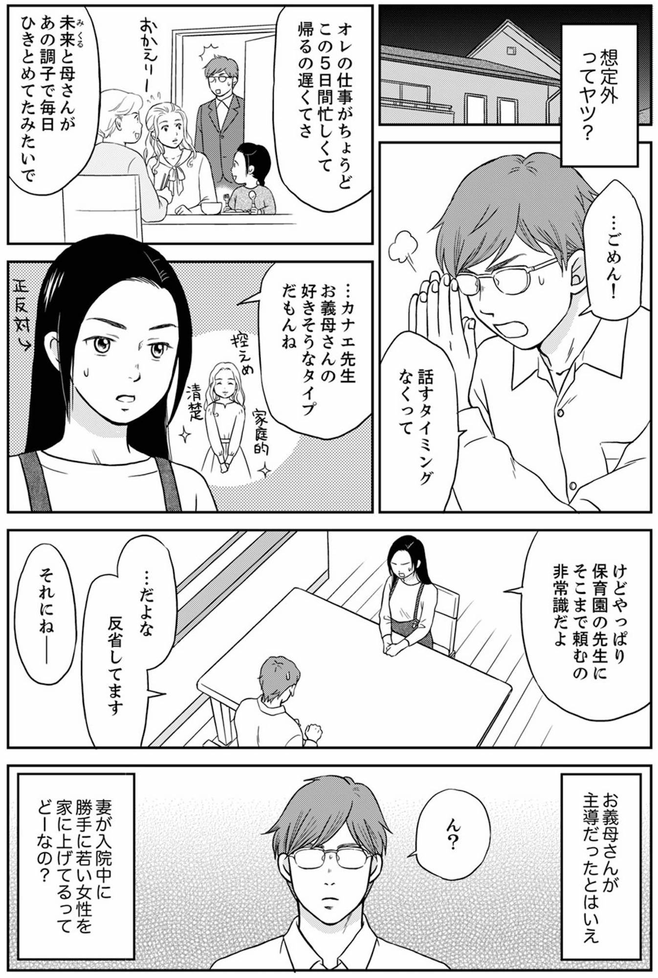 妻の入院中、若い女性を家にあげるなんて非常識! 家に帰るとなぜか娘が通う保育園の先生がいた… 【右手に指輪をする夫 #9】