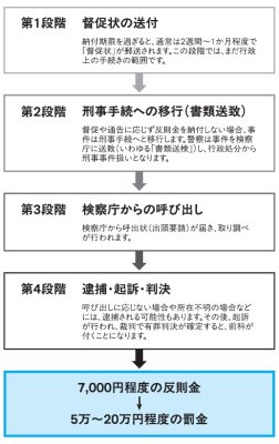 第1段階は督促状の送付で、納付期限から約1か月後に「督促状」が郵送されます。この時点ではまだ行政処分の範囲で、ここで払ってしまえば刑事手続にはなりません。
