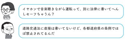道路交通法には確かに「イヤホン禁止」の明文規定はありません。でも「だから大丈夫」と思っていると、痛い目に遭うかもしれません。