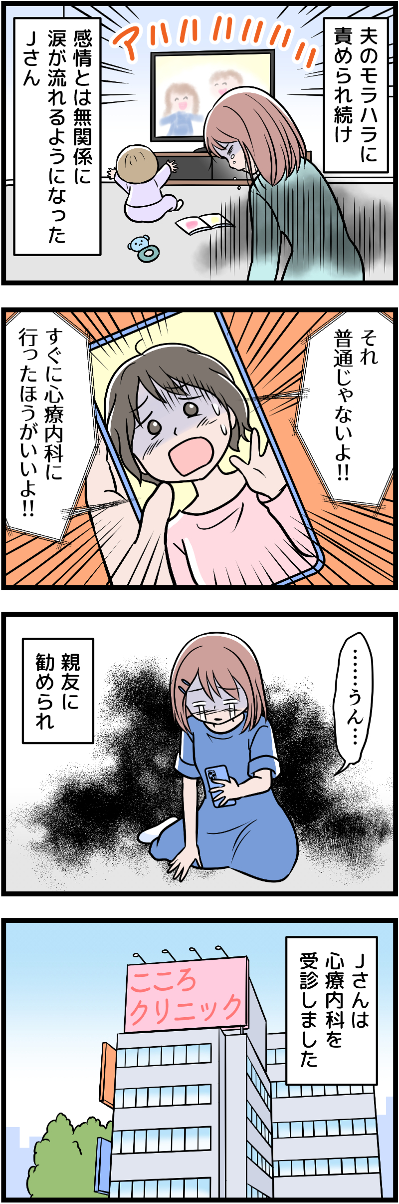 夫婦問題・モラハラカウンセラーの麻野祐香先生の原作による本シリーズ。「結婚してから優しさが失われていった夫。妊娠したらまた優しさが戻ってくるかと期待していたのですが、全く逆でした」今回は、そんなJさんの体験をお伝えします。