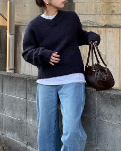 ネイビー×ブラウンで即おしゃれ。ZARAの優秀ニットでつくるこな…