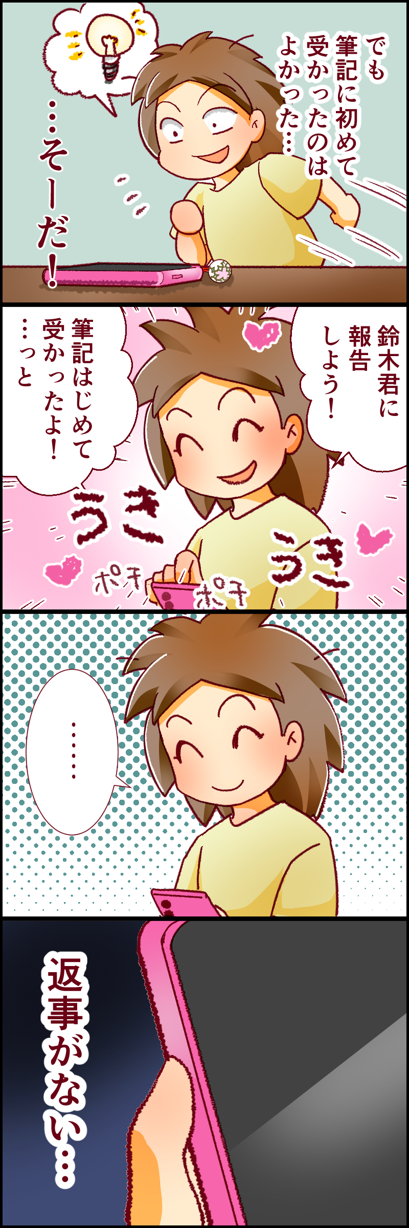 そう、鈴木君は実は性格が悪い屑系男子…。でも、それどころじゃない事態が進行していることに、さつきはまだ気づいていません。関連記事▶▶「ゲッ、併願校の日程間違えてた」信じれられないけど実話です!これってどうすればいいのかなでは、併願校の日程をしっかり確認していなかった(!)さつきが、まさしく人生の岐路に立たさせるお話をお届けします。