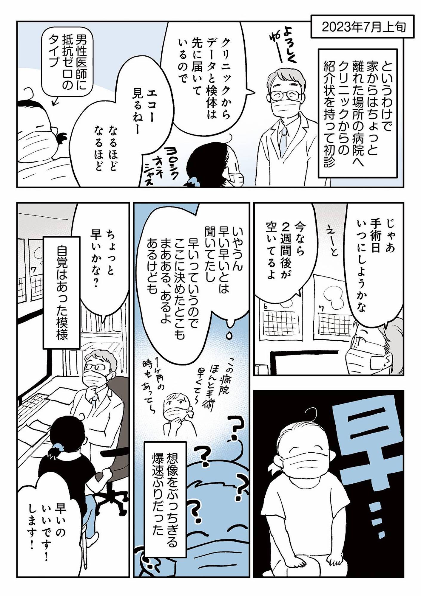紹介先初診日。覚悟はしていたけど、医師の提案する手術日程は2週間後!?【50代おひとり様、5%の希少乳がんになりました #4】