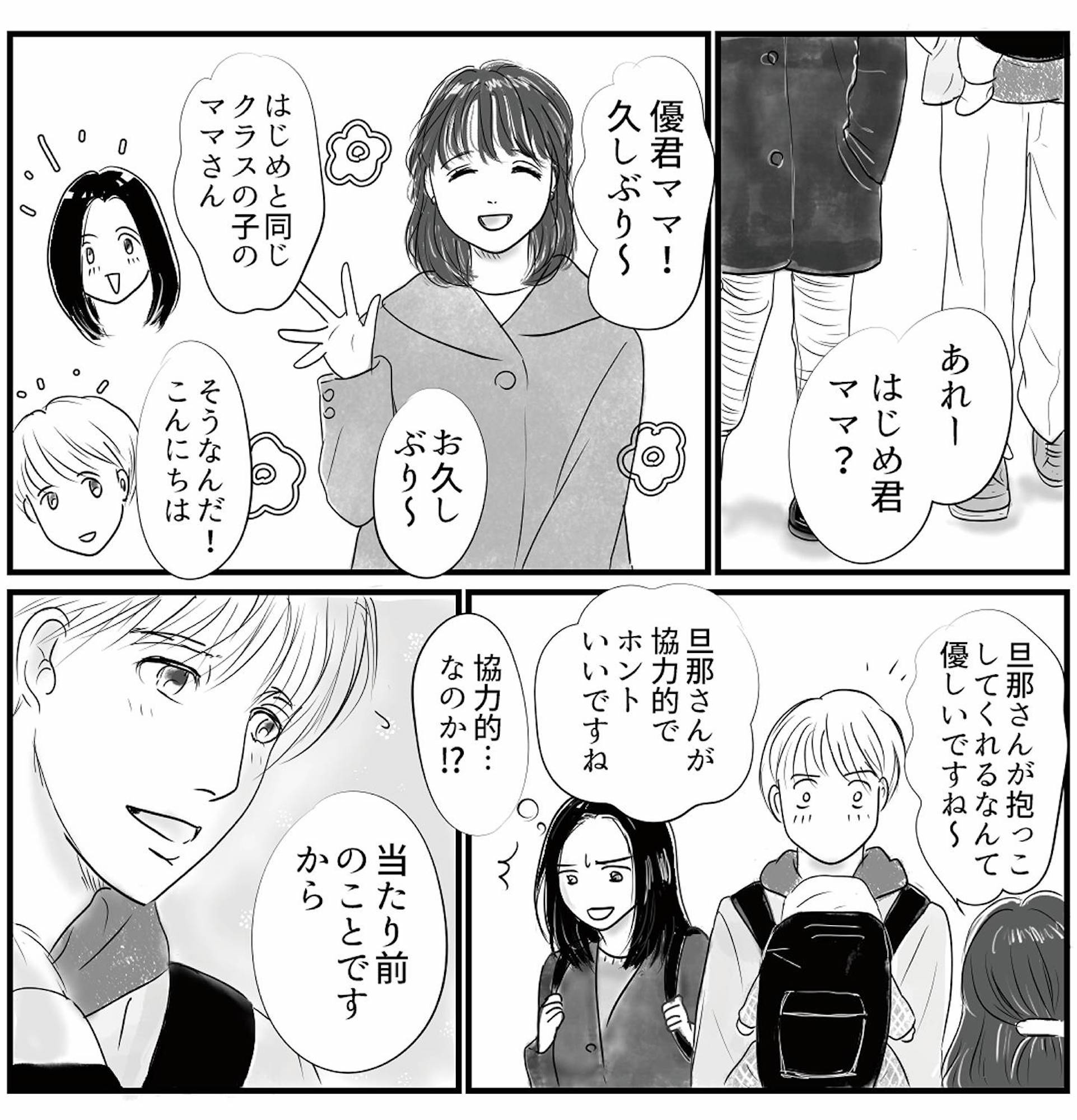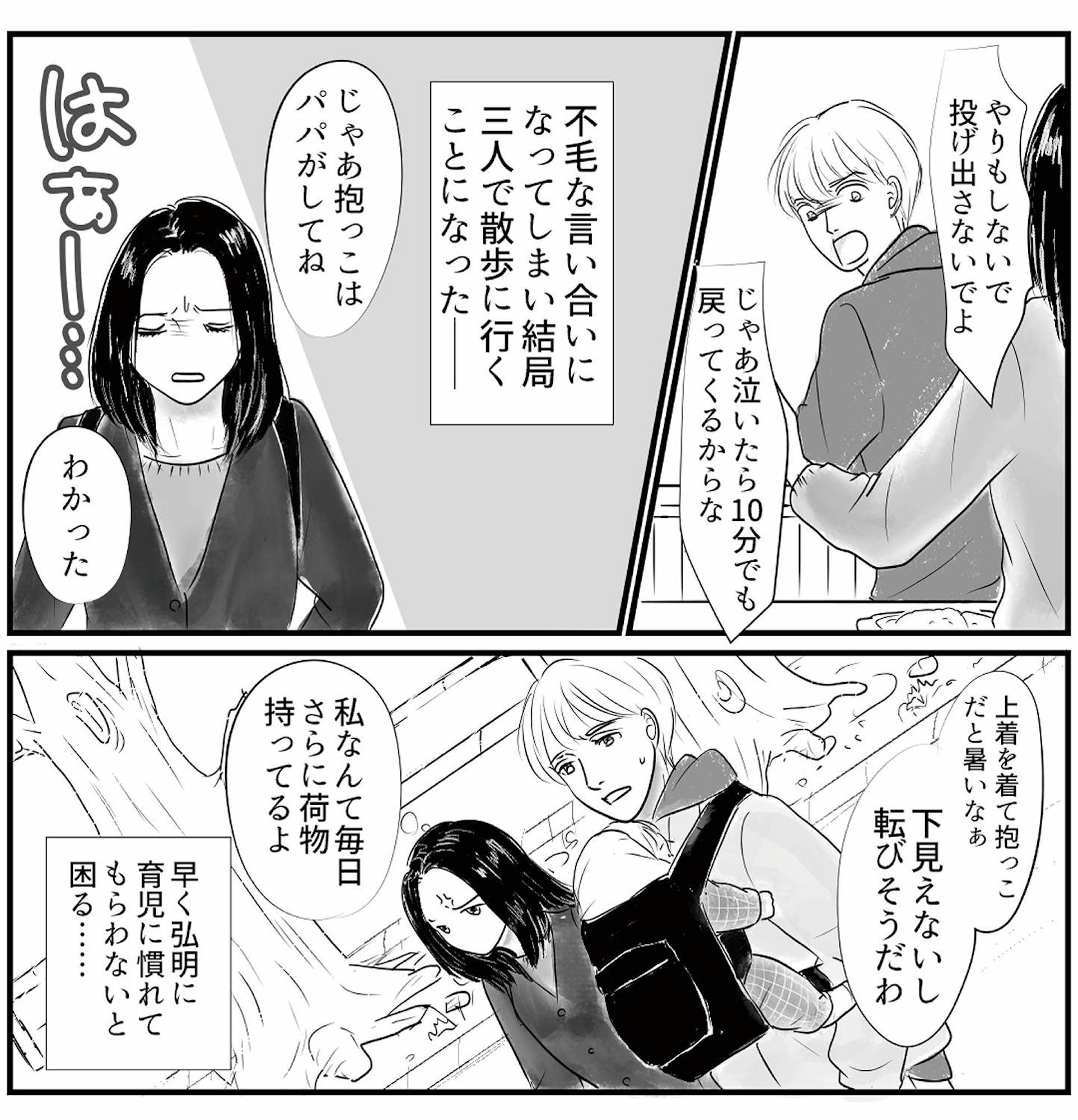 渋る夫に娘を抱かせてどうにか散歩へ。通りすがりのママ友たちに対する夫の反応は?【とるだけ育休の夫はいらない #3】