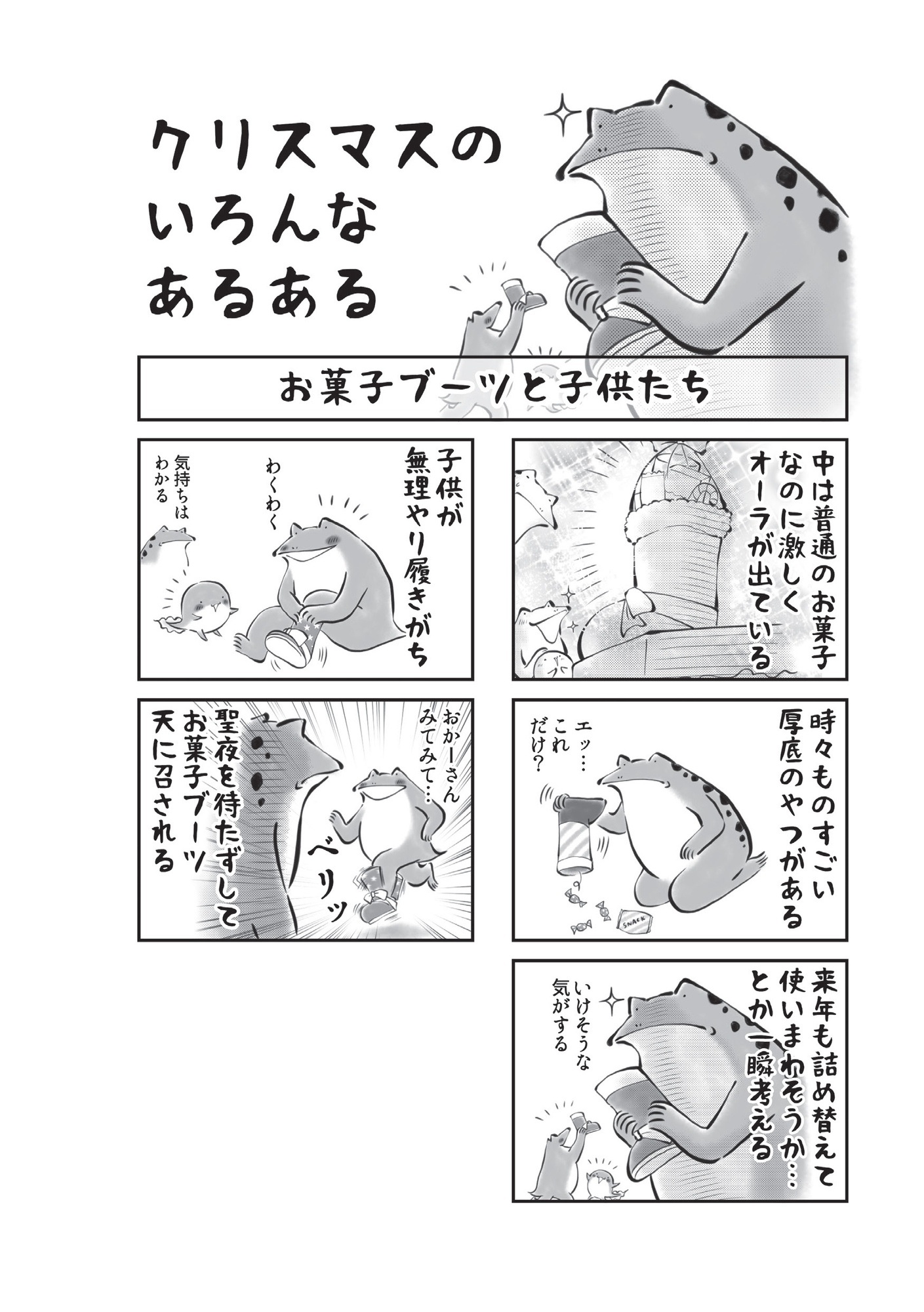 インスタで大人気のユウコトリトリが描く『カエル母さん』は、カエルの長男とおたまじゃくしの次男を中心に育児や家事の“あるある”を鳥獣戯画風にコミカルに描いた四コマ集。
