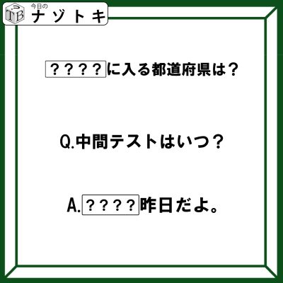 クイズです!「中間テストはいつ?〇〇〇〇昨日だよ」〇〇〇〇には都道府県名が入ります。どこでしょう【難易度LV2.・甘口】