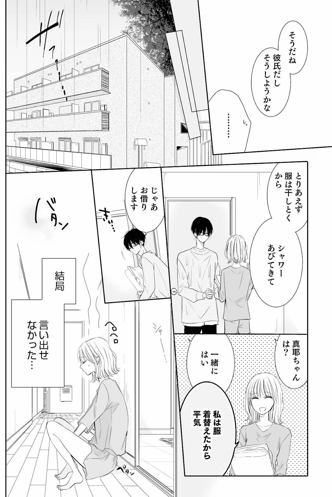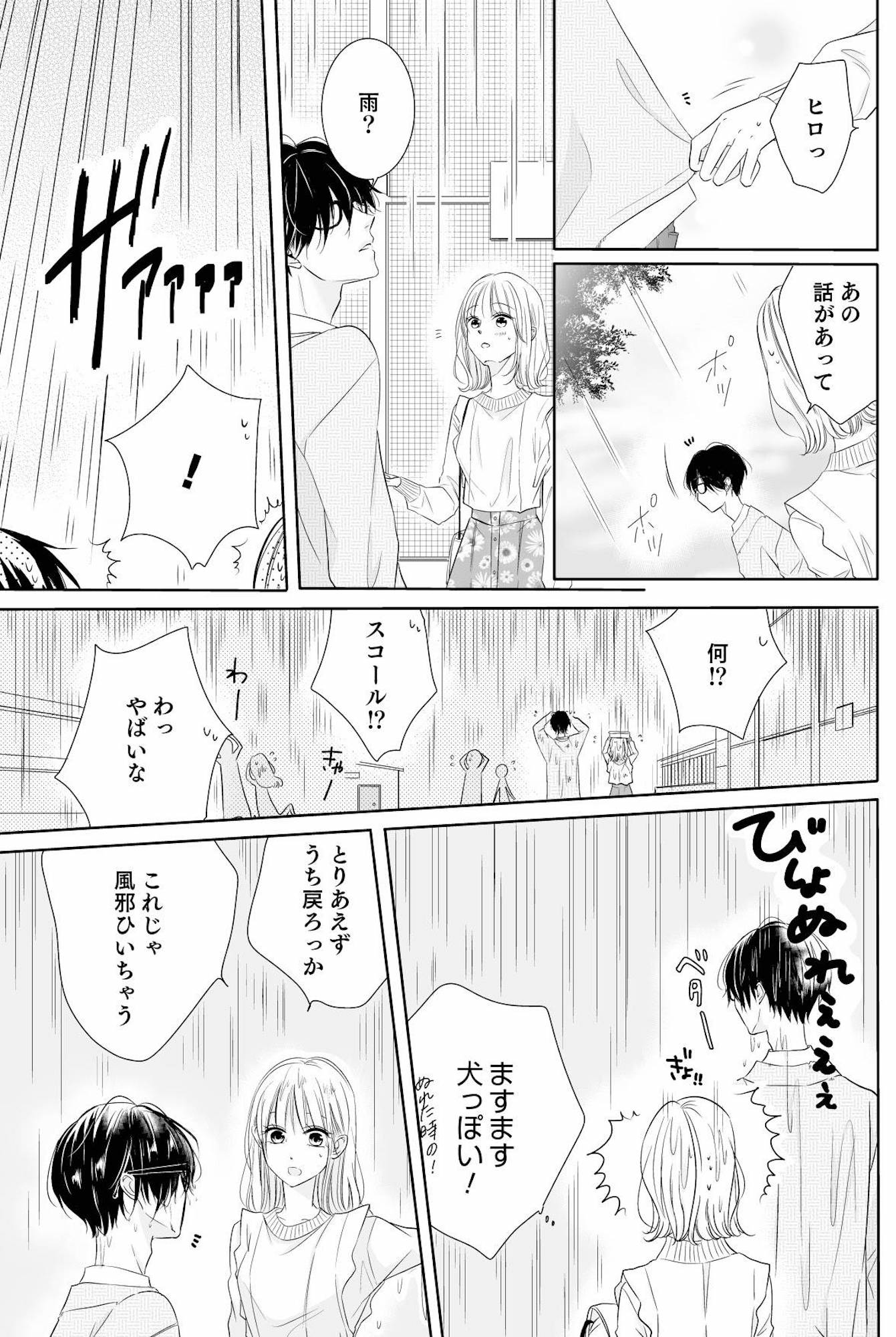 ゲリラ豪雨!仕方なく、デートに舞い上がって「耳としっぽ」が見えるくらい犬っぽい男友だちと我が家に避難した結果【間違いから恋になるのはアリですか? #9】