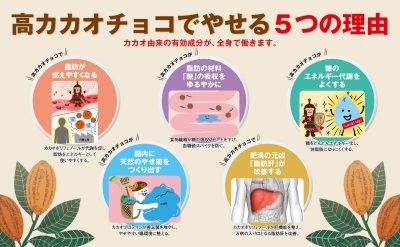 高カカオチョコが血流を改善し代謝を底上げ。脂肪をエネルギーとして燃やしやすい体に。